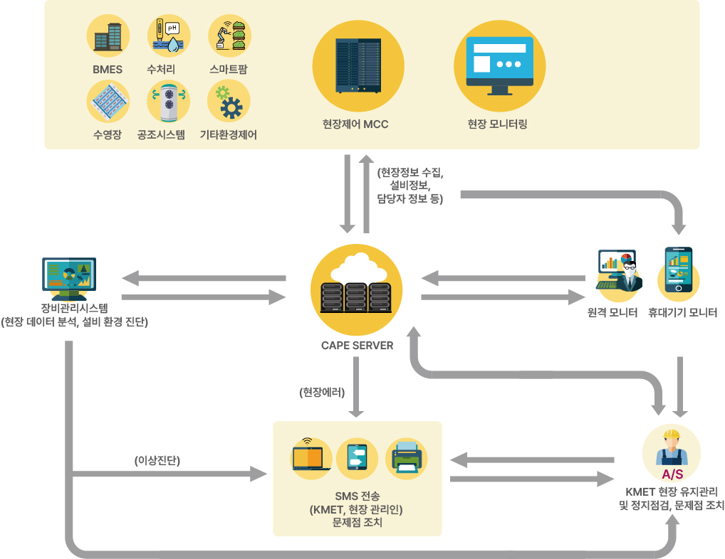 CAPE시스템은 자동환경제어의 점검관리, 장애관리, 작업관리, 예방관리 등 통합적으로 한국기계설비기술에서 전문적인 시스템과 인력을 통해 유지보수 관리를 합니다.